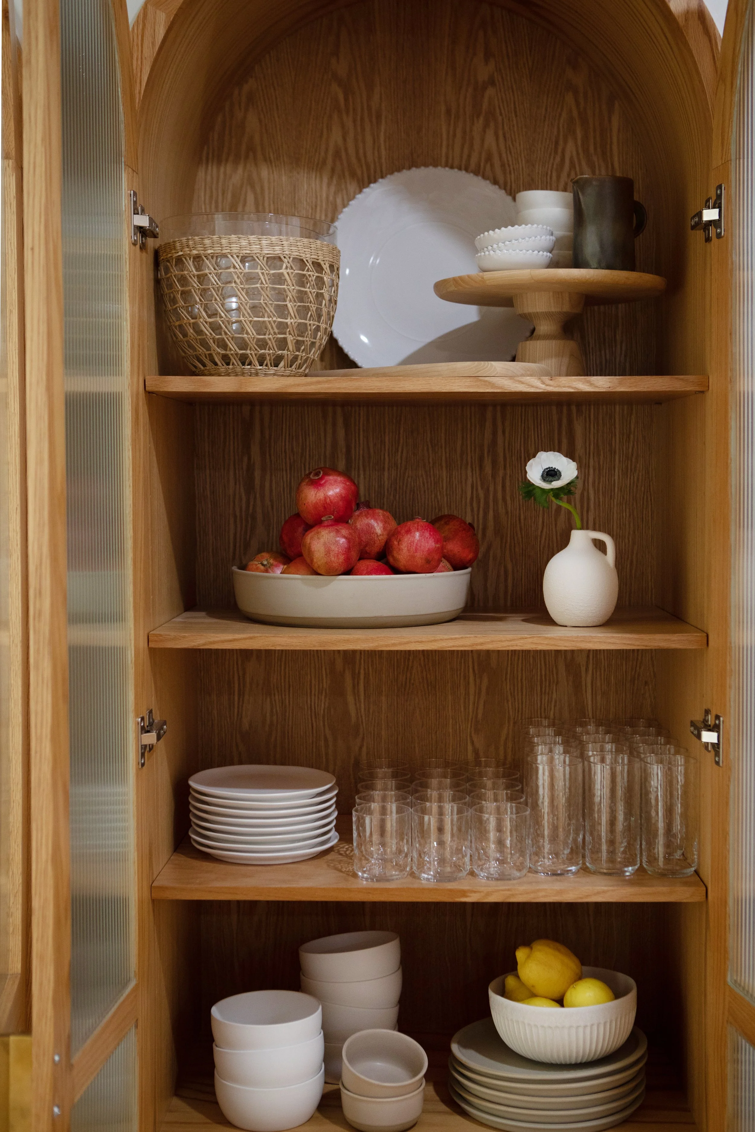 Built ins don’t just store things, they tell a story. This curated moment blends texture, tone, and form to invite a sense of peace and presence. From earthy vessels to gathered botanicals, it’s all about simpl